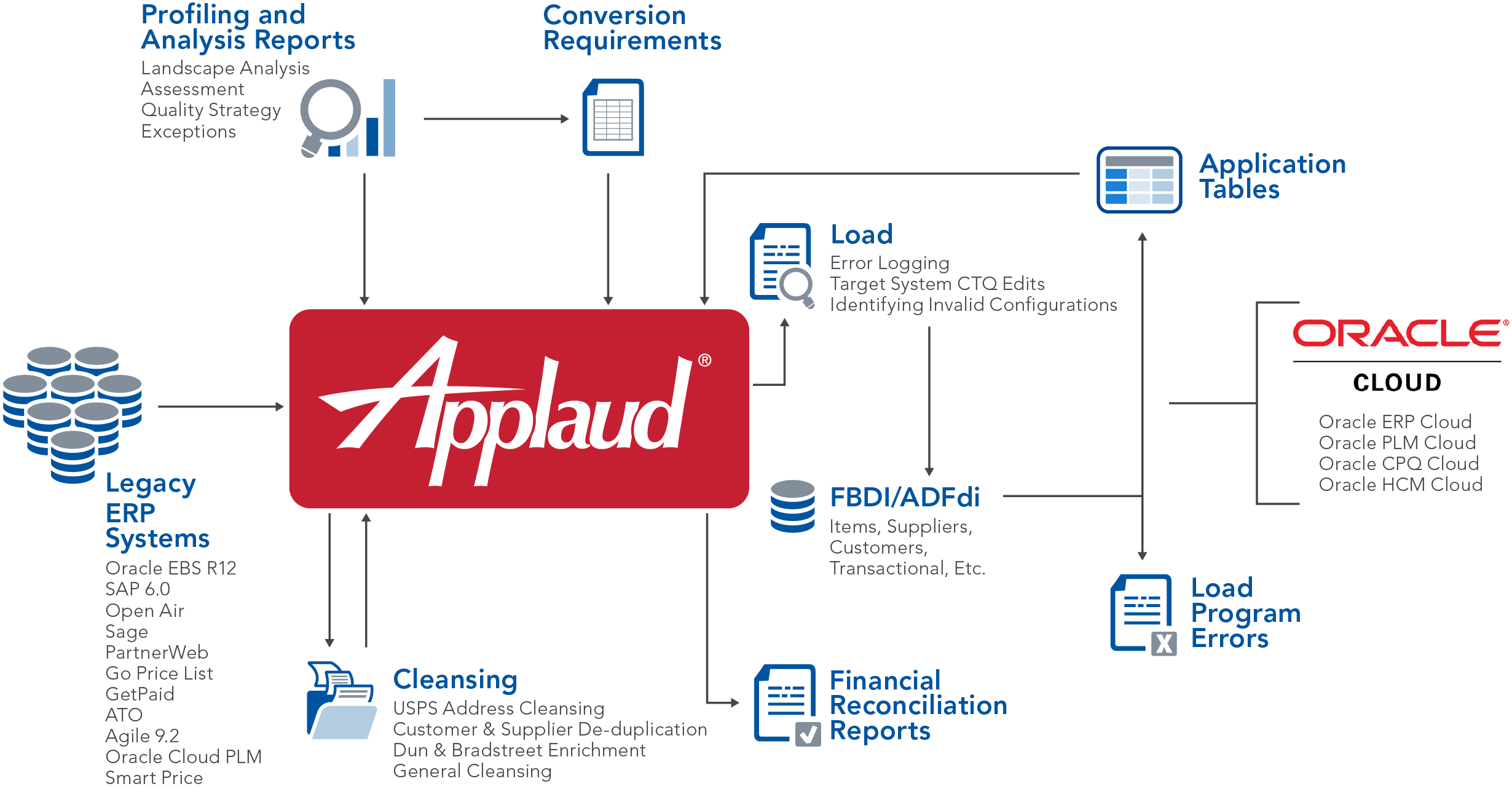 - Utilized Applaud’s dynamic de-duplication process to merge Suppliers, Customers, and Sales Cloud prospects in the various Oracle Cloud applications.