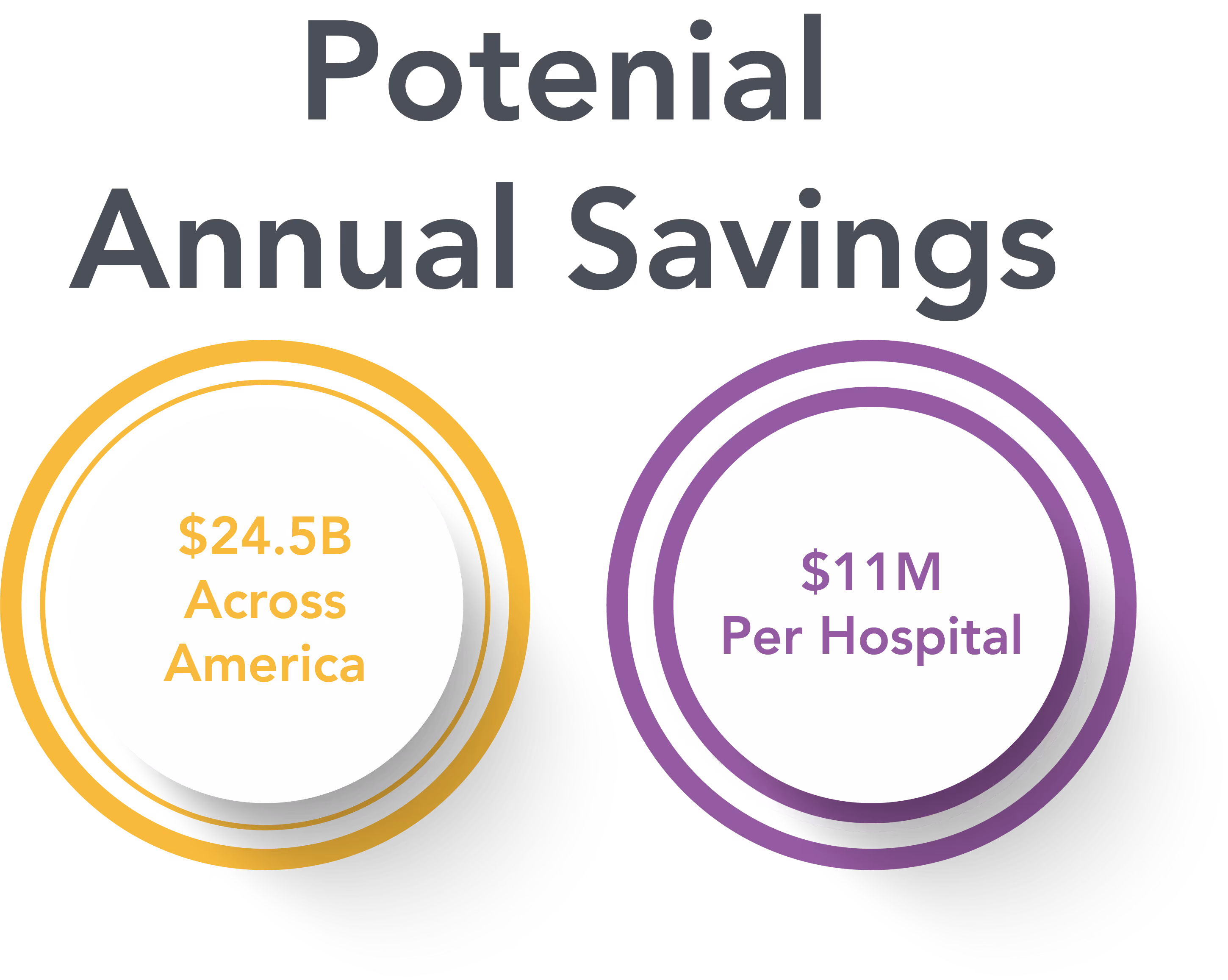 According to a Cardinal Health survey from 2017, 18% of hospital employees have heard of a patient being harmed due to a supply shortage, and 25% knew of expired or recalled products being used to treat patients. Inefficiencies and functional gaps in aging supply chain management systems are causing patients to receive less than desirable care. The same Cardinal Health survey showed that 20% of a physician's time at work is consumed by supply chain tasks rather than caring for patients or working on research. Hospitals in America could save $24.5 billion annually or approximately $11 million per hospital each year by eliminating supply chain inefficiencies. To generate these estimates, hospitals with high performing supply chains were compared with all others, which proves that these savings are realistic and attainable without sacrificing overall hospital performance.