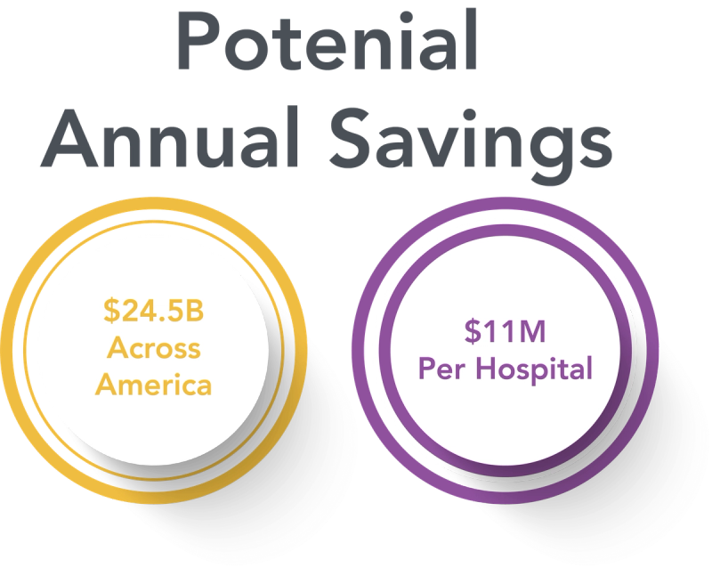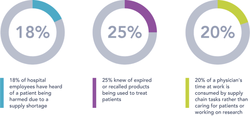 According to a Cardinal Health survey from 2017, 18% of hospital employees have heard of a patient being harmed due to a supply shortage. Also, 25% knew of expired or recalled products being used to treat patients. Inefficiencies and functional gaps in aging supply chain management systems are causing patients to receive less than desirable care. The same Cardinal Health survey showed that 20% of a physician's time at work is consumed by supply chain tasks rather than caring for patients or working on research. Hospitals in America could save $24.5 billion annually or approximately $11 million per hospital each year by eliminating supply chain inefficiencies. To generate these estimates, hospitals with high performing supply chains were compared with all others, which proves that these savings are realistic and attainable without sacrificing overall hospital performance.