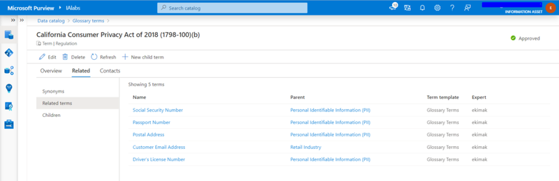 The most critical aspect of data governance is to ensure compliance with relevant regulations. Retail industry templates have defined around 100 privacy clauses for the California Consumer Privacy Act (CCPA) (see Figure 6).