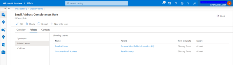 Figure 3 illustrates the association of the data quality rule for checking the completeness of the Data Quality Rule to the business terms from the PII and Retail Industry Glossaries.