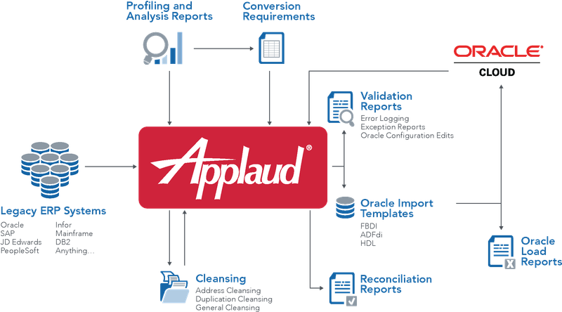 - Hundreds of out-of-the-box pre-load validations identify issues within the legacy data and its compliance with Oracle configuration prior to the upload into Oracle.