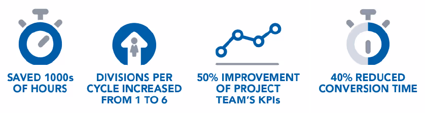 After suffering several project delays, the leading manufacturer of US steel was having difficulty scaling their data conversion process to meet project timelines. In order to ensure that the project was to be delivered on time, they brought in Premier to perform the data migration. Premier increased the number of divisions per cycle from 1 to 6 and enabled the time between go-lives be compressed from 6 months to 3 months. Premier’s four consultant team reduced the Client’s data migration team by 7 FTEs and saved thousands of hours across the approximately 100-person project team.