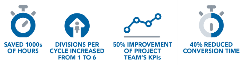 After suffering several project delays, the leading manufacturer of US steel was having difficulty scaling their data conversion process to meet project timelines. In order to ensure that the project was to be delivered on time, they brought in Definian to perform the data migration. Definian increased the number of divisions per cycle from 1 to 6 and enabled the time between go-lives to be compressed from 6 months to 3 months. Definian’s four consultant team reduced the Client’s data migration team by 7 FTEs and saved thousands of hours across the approximately 100-person project team.