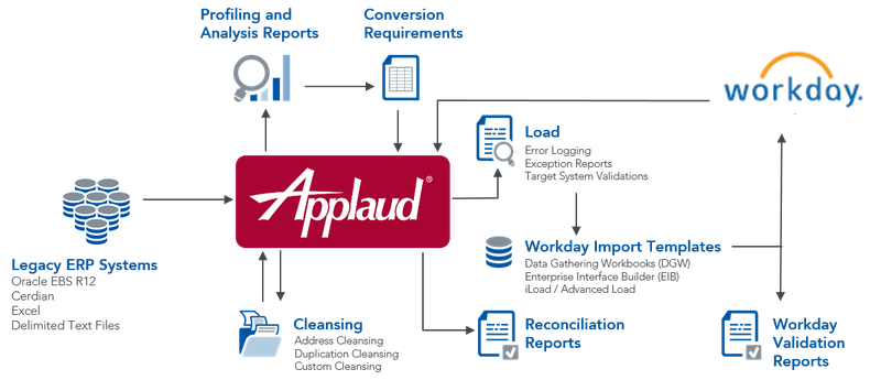 - Deployed Applaud’s integrated analytics/reporting tools to perform deeper analysis on the legacy data to identify numerous legacy data issues as well as Workday-specific validations, identifying missing or invalid configuration prior to loads.