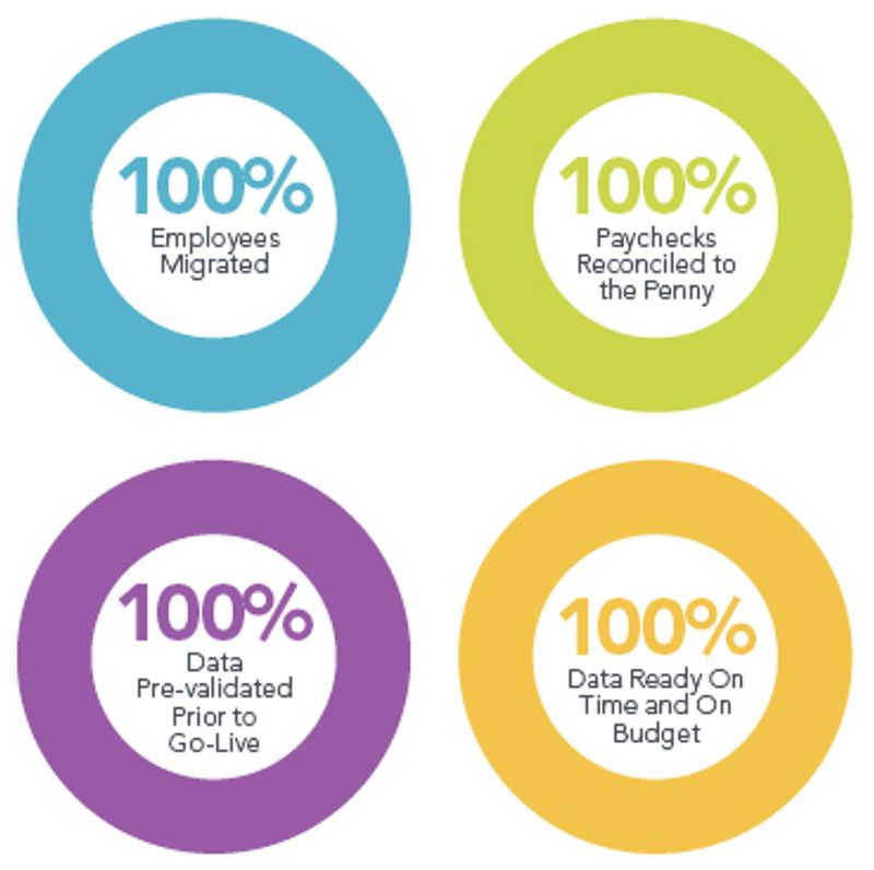 Bringing Definian into the project drastically reduced the risk of failure. The end result of using Applaud data migration services was a successful implementation. With 100% of converted records successfully loaded, the business could begin running HR business processes in Workday right away. In addition, with a 100% successful historical payroll data conversion and a payroll reconciliation that compared every line of every paycheck and provided exhaustive variance reports, the client began payroll processing in Workday immediately, confident that their data was accurate.